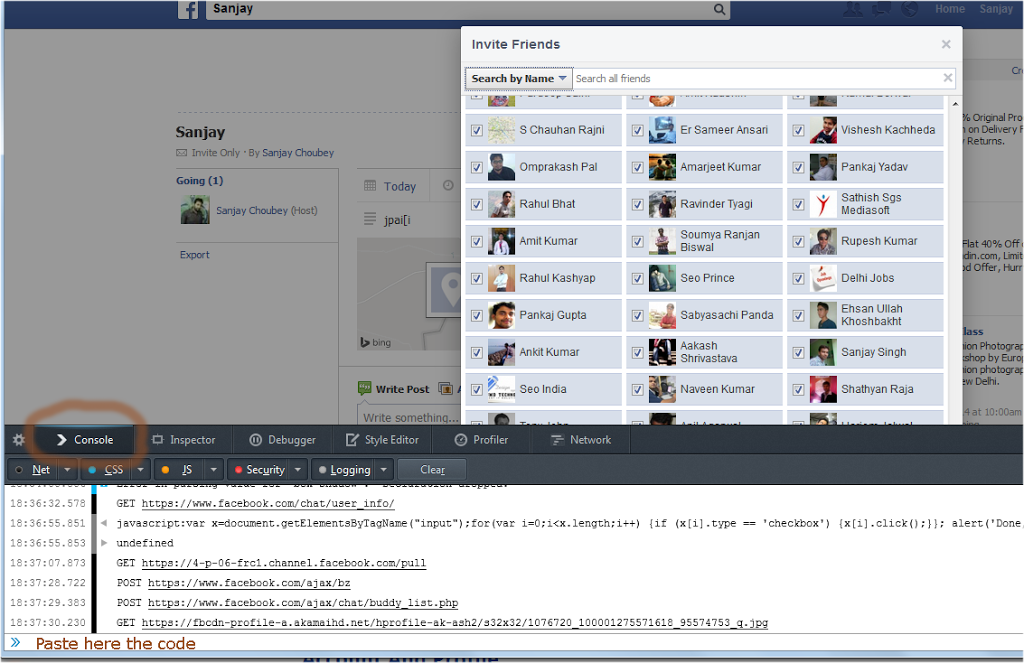 Invite all your friends on a single click to join an event on facebook