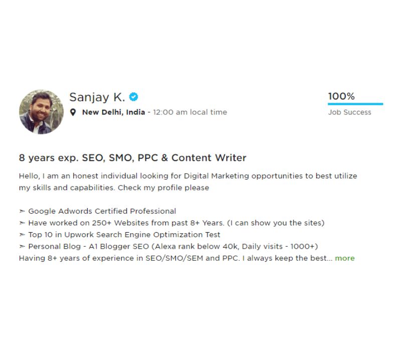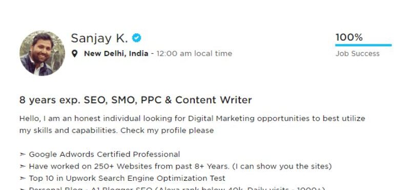 Being a Google Adwords & Analytics certified professional and top rated Digital Marketer on world’s leading freelance working website – Upwork, I have over 15 years of experience to provide excellent SEO, SMO, PPC, ORM, Blogging and other Digital Marketing services that too in affordable budget. My SEO services start at just 100 USD per month.